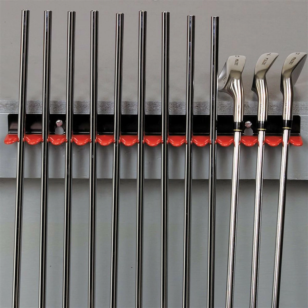 The Bench Mount Shaft Holders keeps clubs and shafts securely standing against your workbench, ready for the next step in the assembly and or repair process. The shaft holders are available in two size options. The original shaft holder will hold 12 shafts while the XL version will hold 22 shafts. A thick rubber coating protects the finish on all steel and graphite golf shafts. The shaft holders easily attaches to the front or side of your workbench with 2 screws.