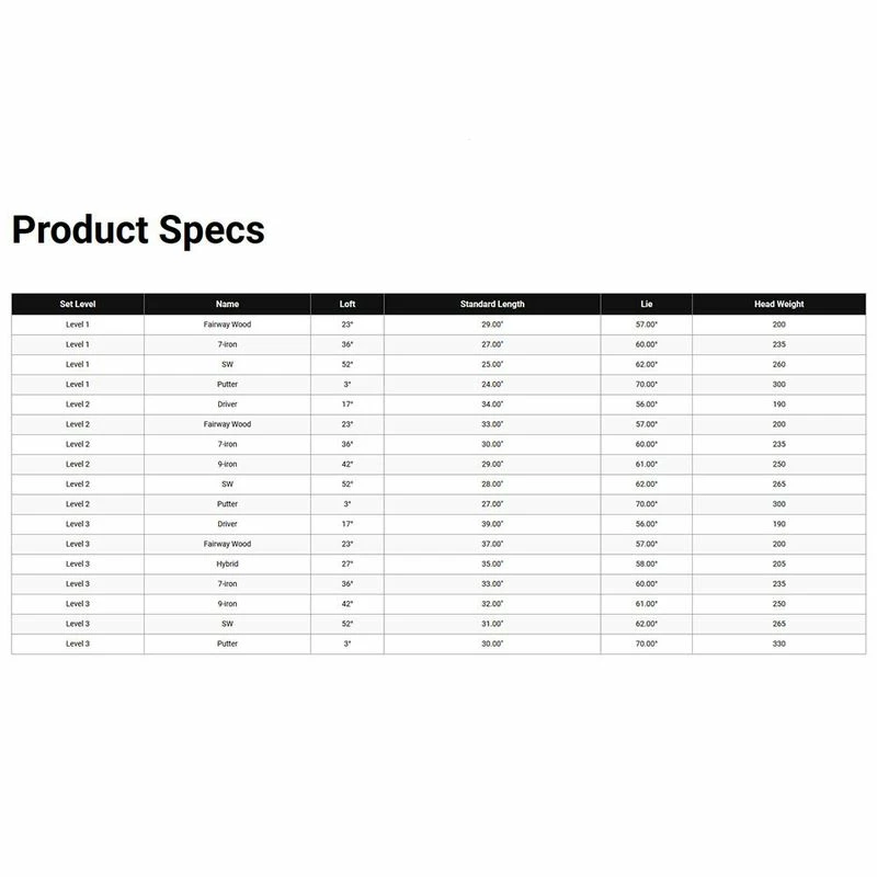 - Ultra-light Clubs — These ultra-light weight sets are engineered so that each club is easy to swing for the best performance.
