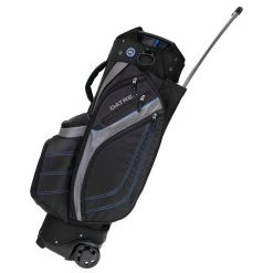 The Datrek Transit Cart Bag is a wheeled cart bag with retractable handle and rolling 2-wheel base making it the most portable golf bag on the market.