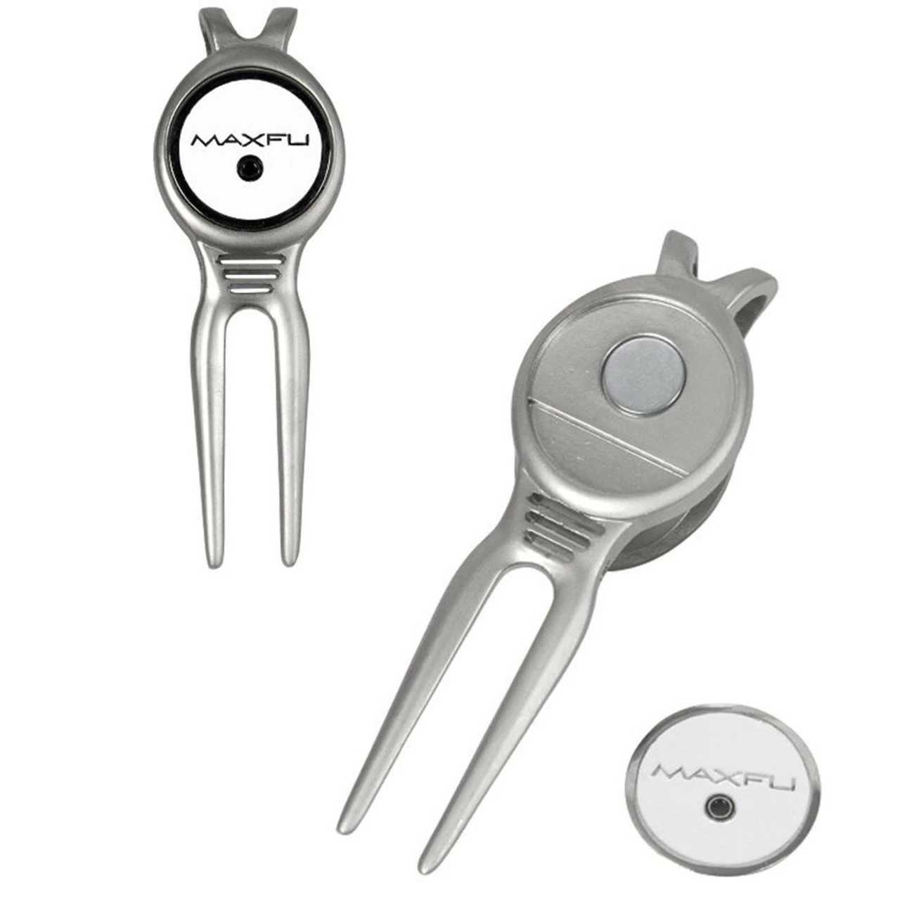 Repair ball marks after sticking the approach shot with the Maxfli Divot Tool. An ergonomically designed grip handle provides a comfortable grip as you repair your ball mark. The Divot Tool attaches to your belt to keep your pockets clear. A magnetic ball mark is attached for easy and quick access.