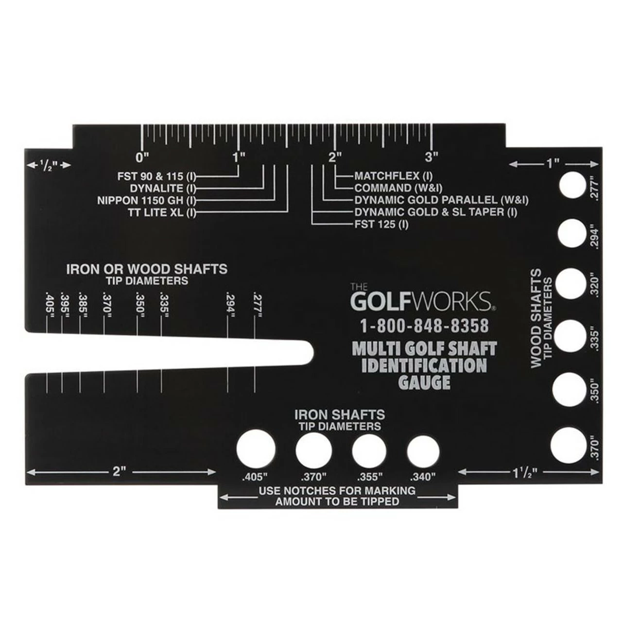 A must have tool for reshafting and identifying almost any shaft. The Multi Golf Shaft Identification Gauge: