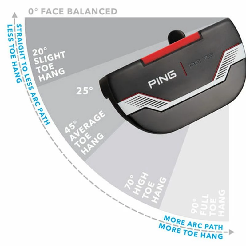 | DS 72 | 33″, 34″, 35″ | 360g | Slight Arc | 20° ±4° | 3° +3°/-2° | PING Pistol PP58 |