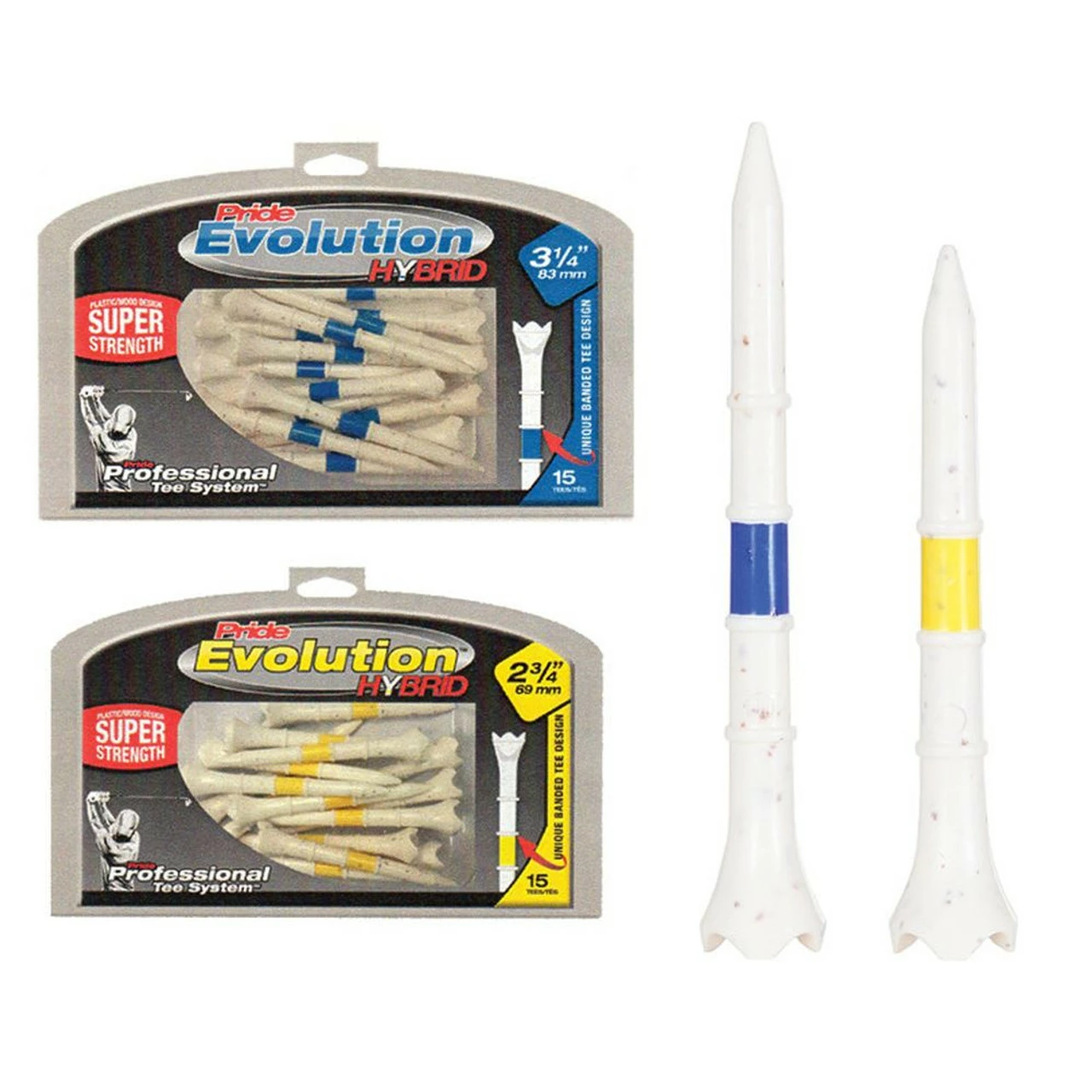 Pride Professional Tee System (PTS) Evolution is a plastic performance tee engineered with special low-resistance tips that create less friction between the golf ball and tee – resulting in longer drives.