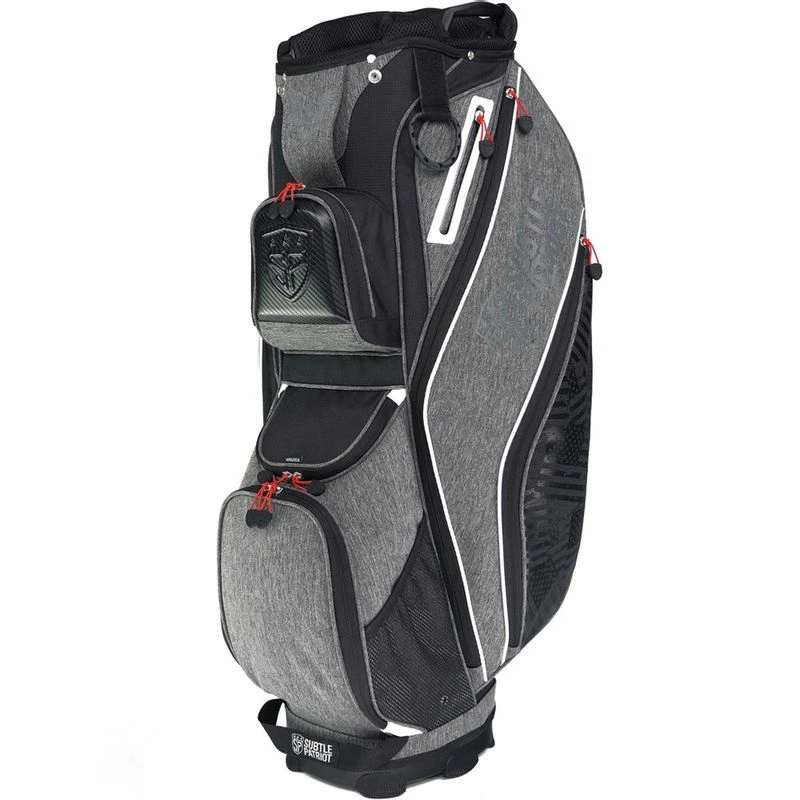 A coalition of protection, function and weight, the 5.2 lbs. Covert Cart bag offers the ability to gear up or pare down. Fifteen specially tailored club openings allow for no snag use of regular and oversized grips. Expand your storage by making use of the tactical ready Molle System or clip ready Web-Wave, ideal for hanging distance measuring devices or “brag tags” collected from your most memorable golf adventures. Protect your cell phone screen and electronics with the hard-shell valuables pocket, positioned for access while the cart strap is in use. Adapts perfectly to use on a push or pull cart.