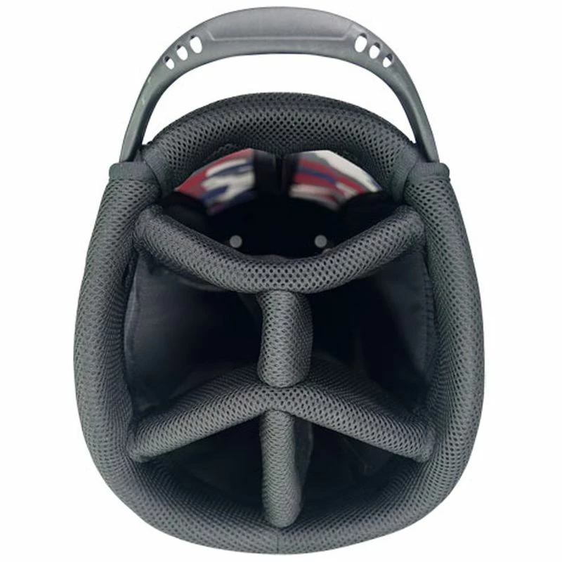 Exceptionally versatile whether you pack it or push it, the 4 lb. Hero Stand Bag is equipped with a feature set for either operation. When packing, the Subtle Patriot Strap automatically adjusts to custom fit any body type and continuously re-distributes the weight evenly to both shoulders. While strapped on, you’ll enjoy perfect access to your distance measuring device with a self-sealing security closure and an insulated hydration pouch. When pushing, the typical, impeding foot pedal is eliminated with the flex-foot base, providing a more stable fit on the cart. In either case, the hard shell, fleece line valuable pocket will protect your cell phone screen, electronics or other valuables from accidental damage. Don’t miss the hidden, padded “carry” pocket that allows extra protection for more private items and if 9 pockets aren’t enough, feel free to add storage through use of the Molle System.