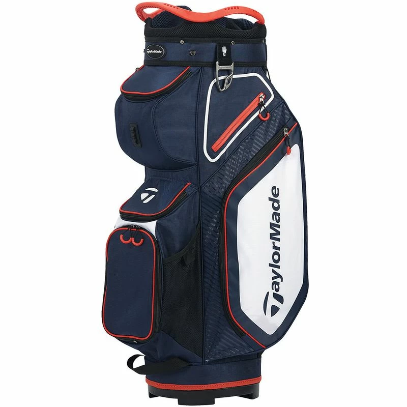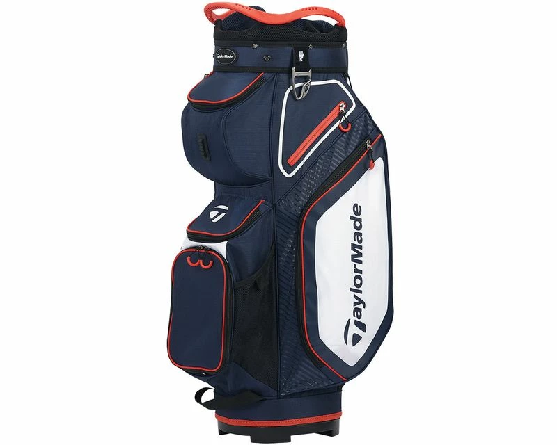 TaylorMade’s Cart 8.0 bag is designed to reduce club crowding. It features a 14 way top with an oversized putter well. Multiple handles make lifting the bag an easy task and the front facing pocket design make accessing the pockets from the cart a breeze. The bag is equipped with 7 pockets that include oversized pockets, a velour lined valuables pocket, and an XL removable ball pocket.