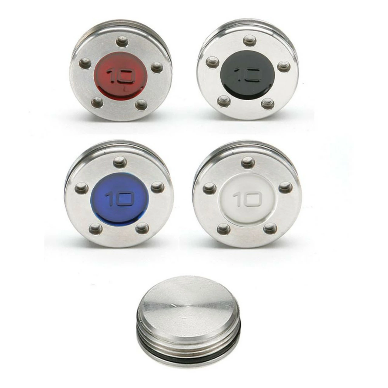 The GolfWorks Aftermarket Weights fit Scotty Cameron® Putters and are available in 4 colors – black, blue, red and clear. Weights are sold in pairs and fit numerous Scotty Cameron Newport, Futura, Golo, Square Back, My Girl and Fast Back putter models with removable weights.