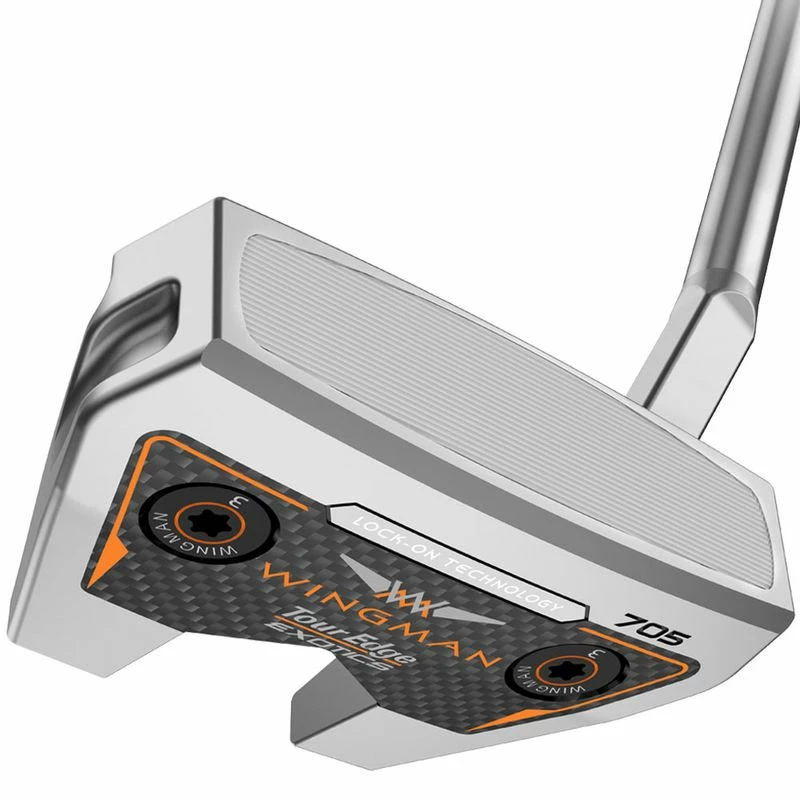 The new Exotics Wingman 700 putter series features brand new designs that offer extreme M.O.I. and are engineered for maximum stability and optimal roll. The three innovative designs provide optimized alignment optics on the revolutionary Lock-On technology alignment aid, as well as improved sound and softer feel from the precision molded TPU insert.